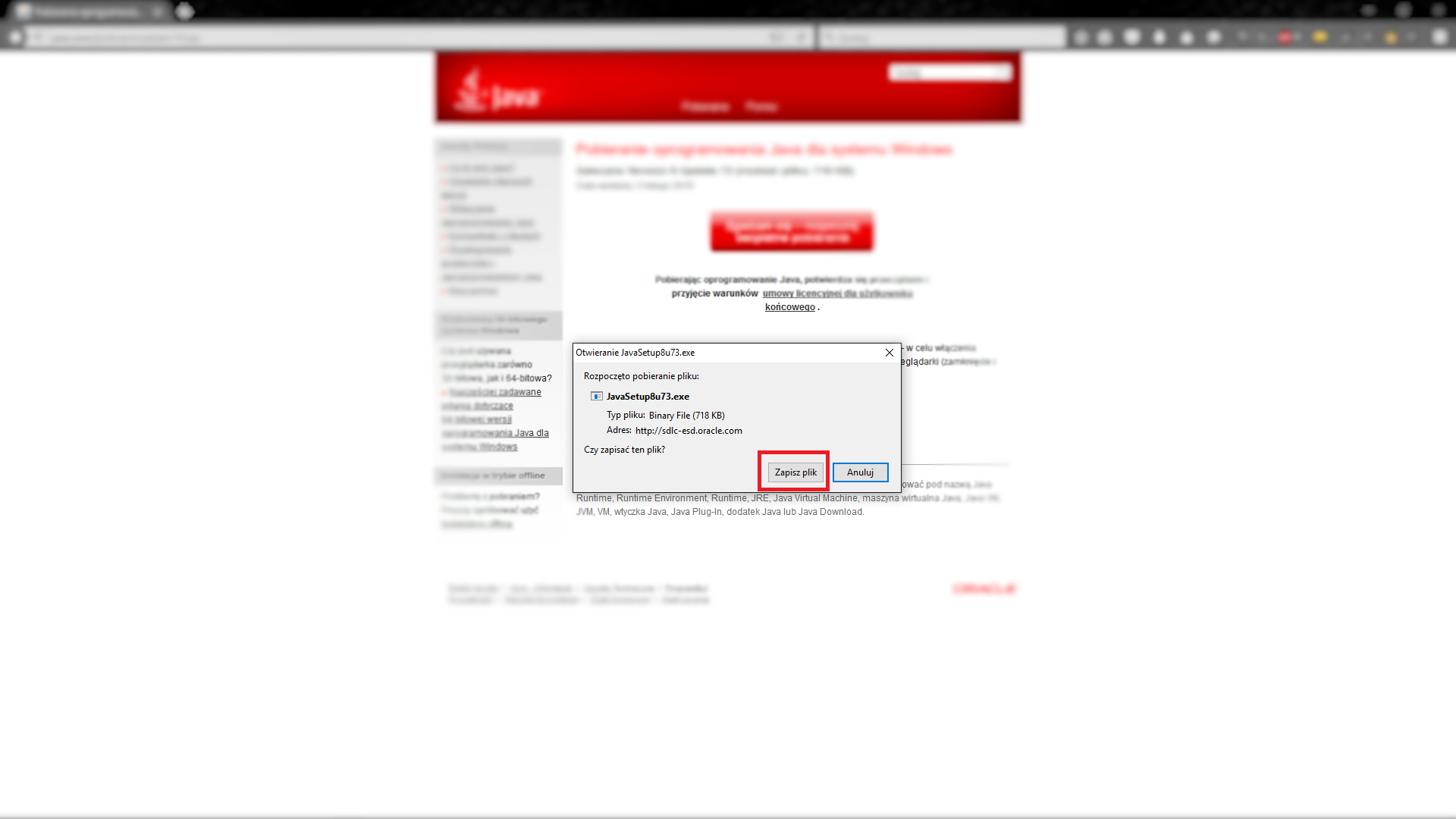 Zapisujemy plik na dysku oraz uruchamiamy instalator