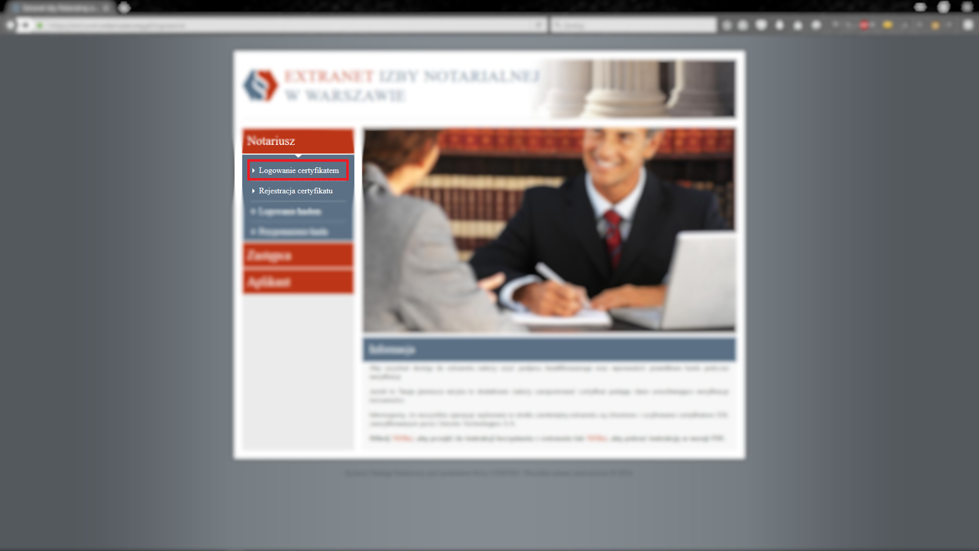 - Extranet – wydzielona przestrzeń do wymiany poufnych informacji pomiędzy Izbą a Notariuszem