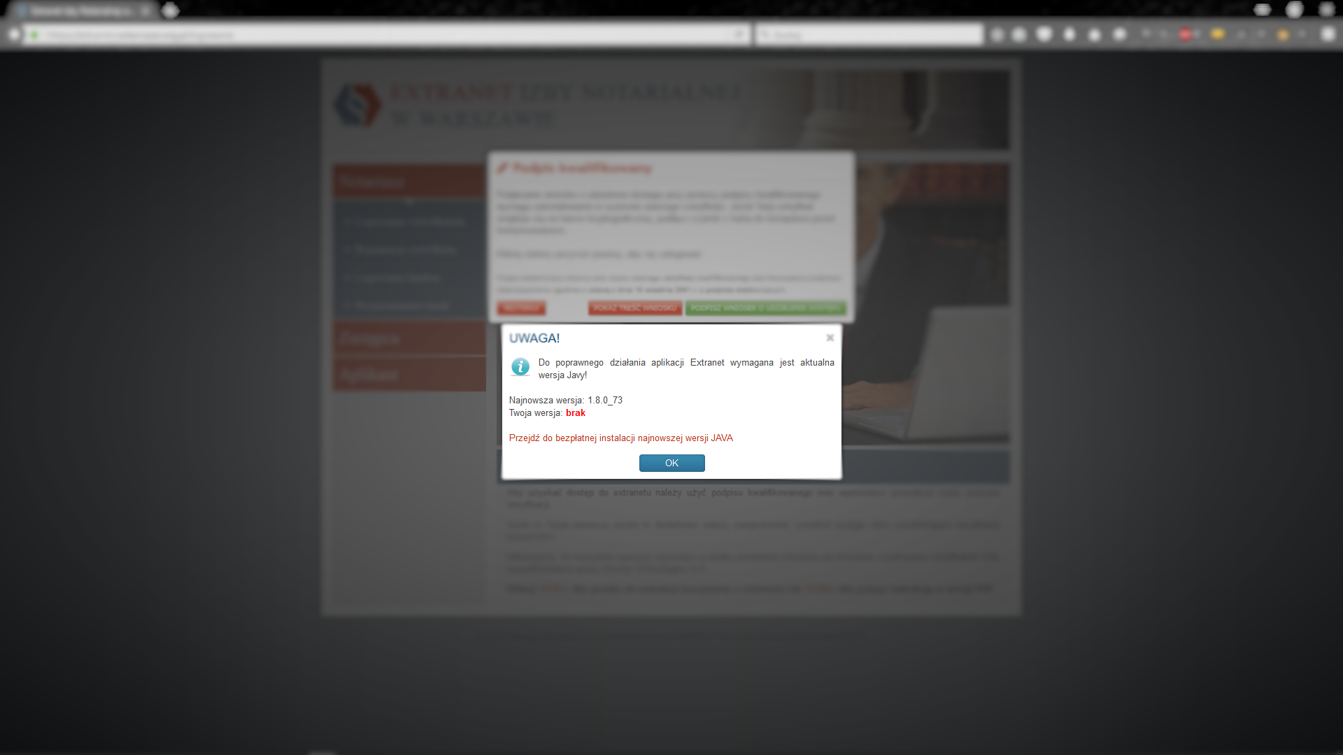 5.2 Nieaktualna wersja oprogramowania JAVA zainstalowana na komputerze lub jej brak (Mozilla Firefox / Internet Explorer)